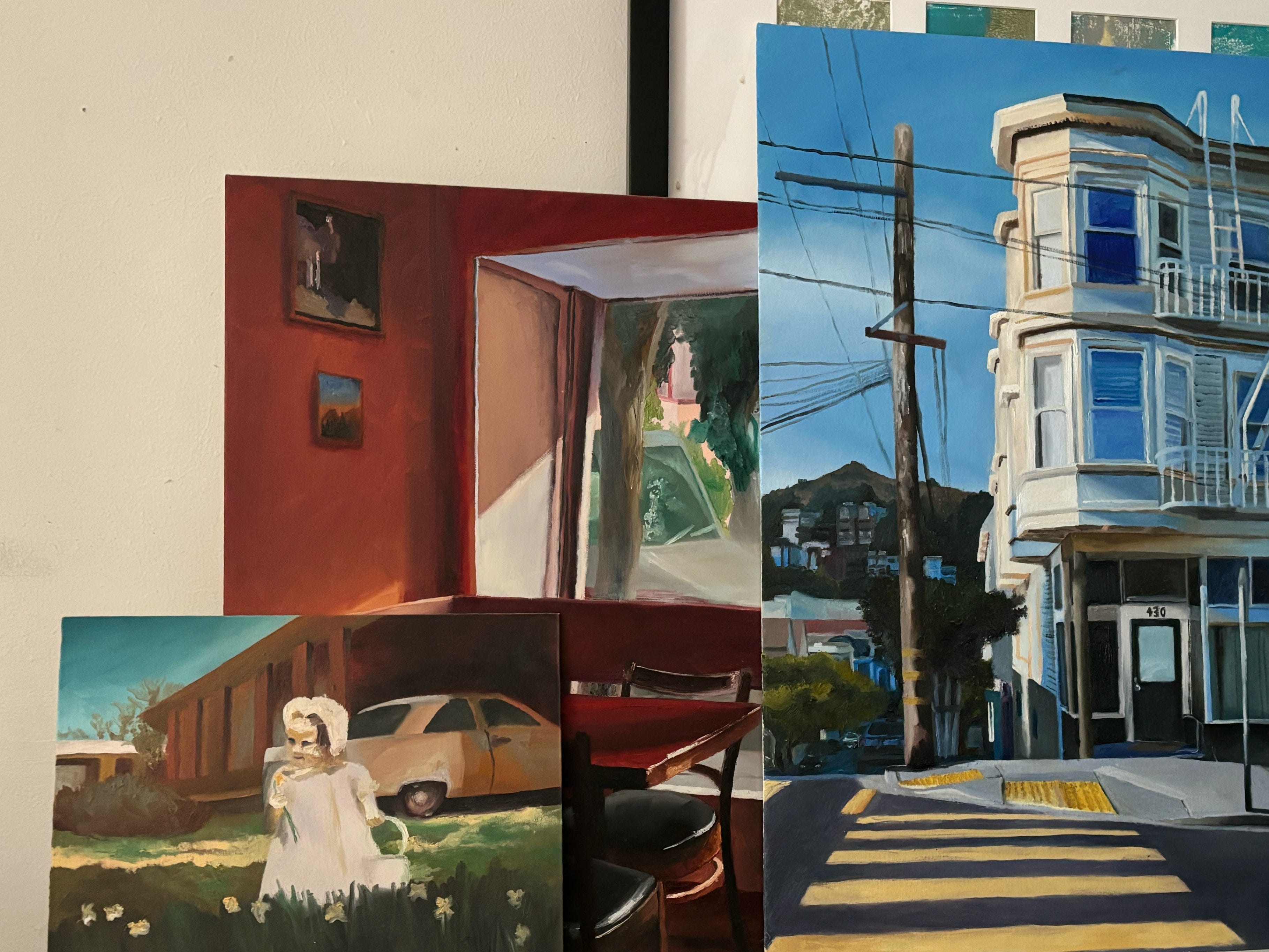 The painting reframes the story. This clearly wasn’t a highway moment. The painting has details I didn’t have. The Easter basket, the building in the background, the angle of the car…. I read the painting differently than I read the image in my memory through the years. It is easy to weave a new narrative, one probably closer to the truth and yet still made up.