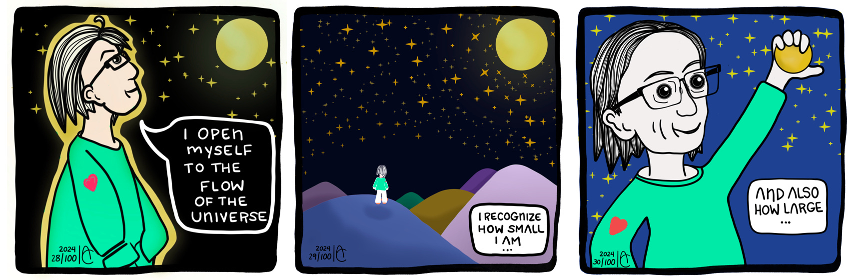An exercise in simplified line and positive thinking, a daily affirmation comic for the 2024 100 Day Project.