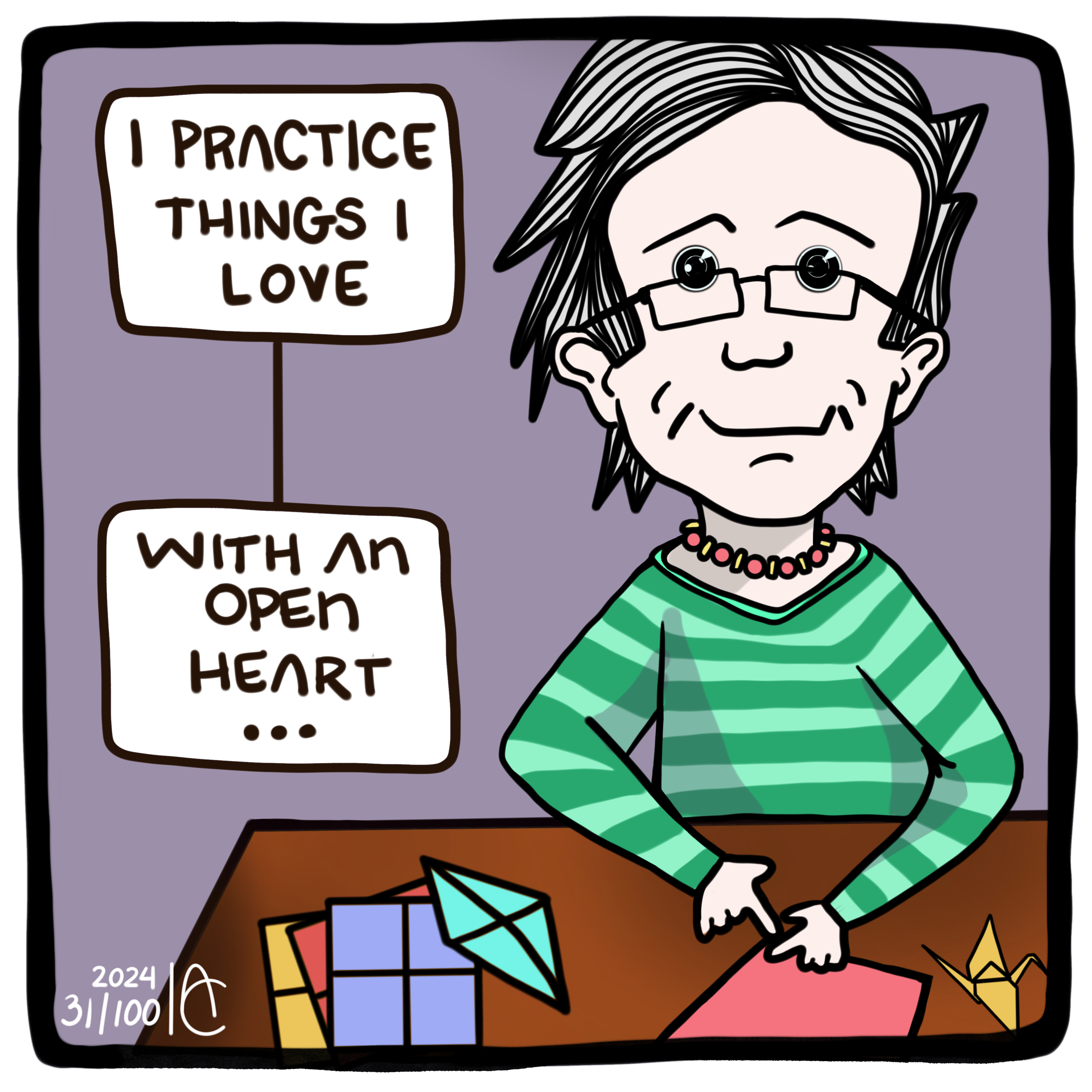 I outlined the comic affirmations self-portrait project I am doing for the 2024 100 Day Project in this post. The first 28 are documented here and here and here and here.