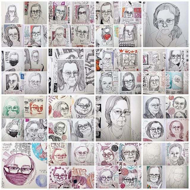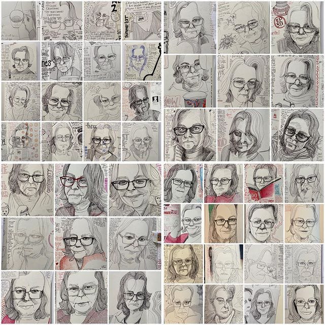 I’ve been doing weekly self-portraits (on paper) since 2019. Every. Single. Week. No matter what else I draw in the week, I know there will be a self-portrait. This “weekly” is a staple of my illustrated journal routine.