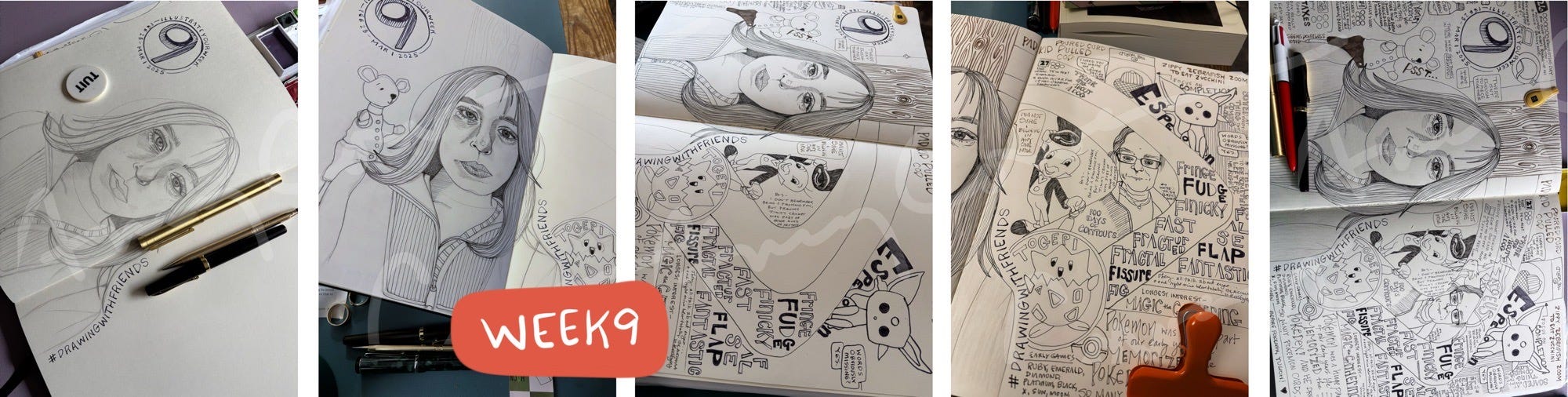 Week 9 started, again, with a central portrait that I drew during our Sunday morning drawing group.