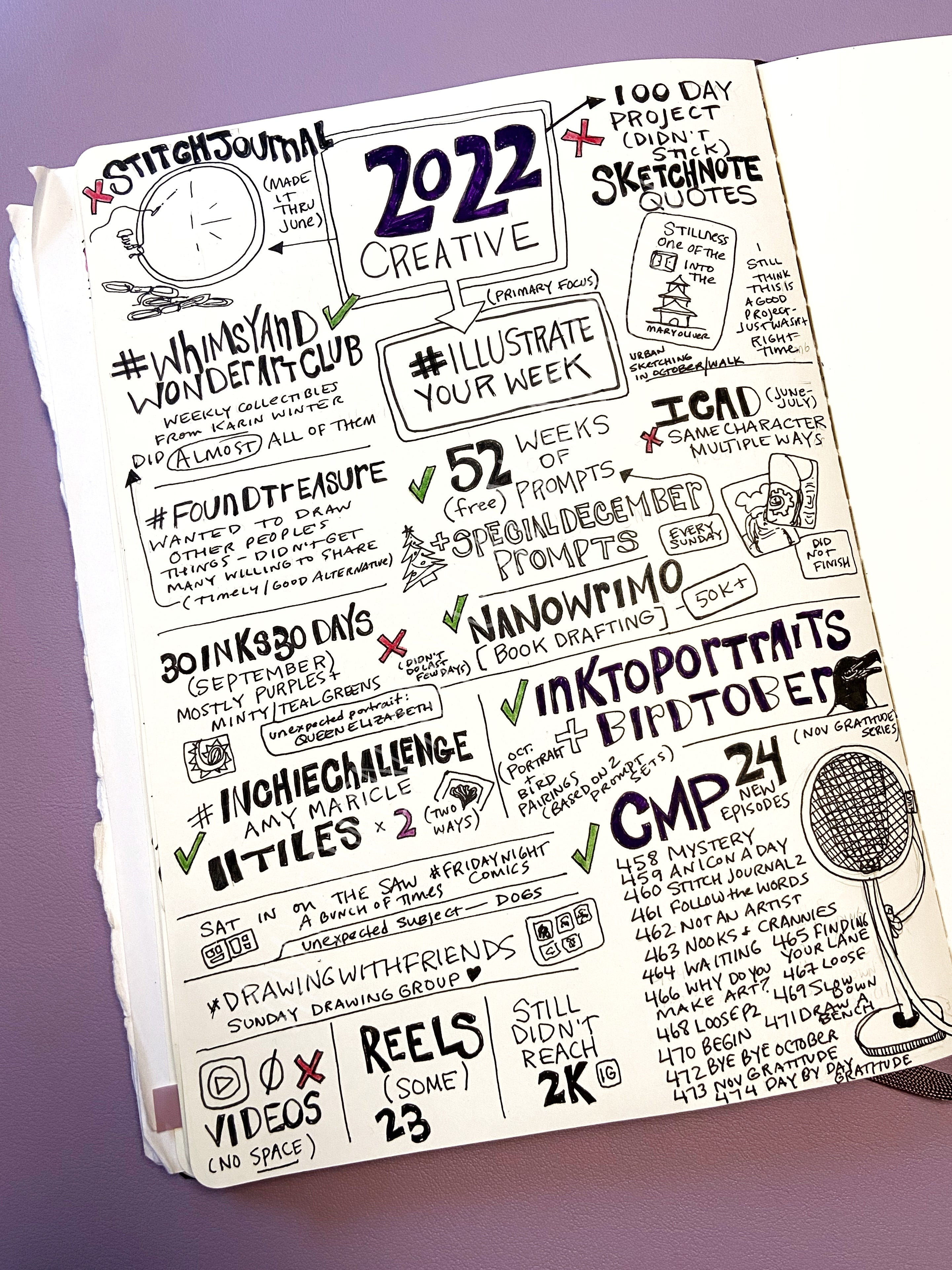 My advocation of an End-of-Year Sketchnote was, initially, a group challenge in the Creativity Matters Podcast community. While I still don’t do as much sketchnoting as I want, I consider sketchnoting to be an integral part of my #illustrateyourweek illustrated journal project and process.