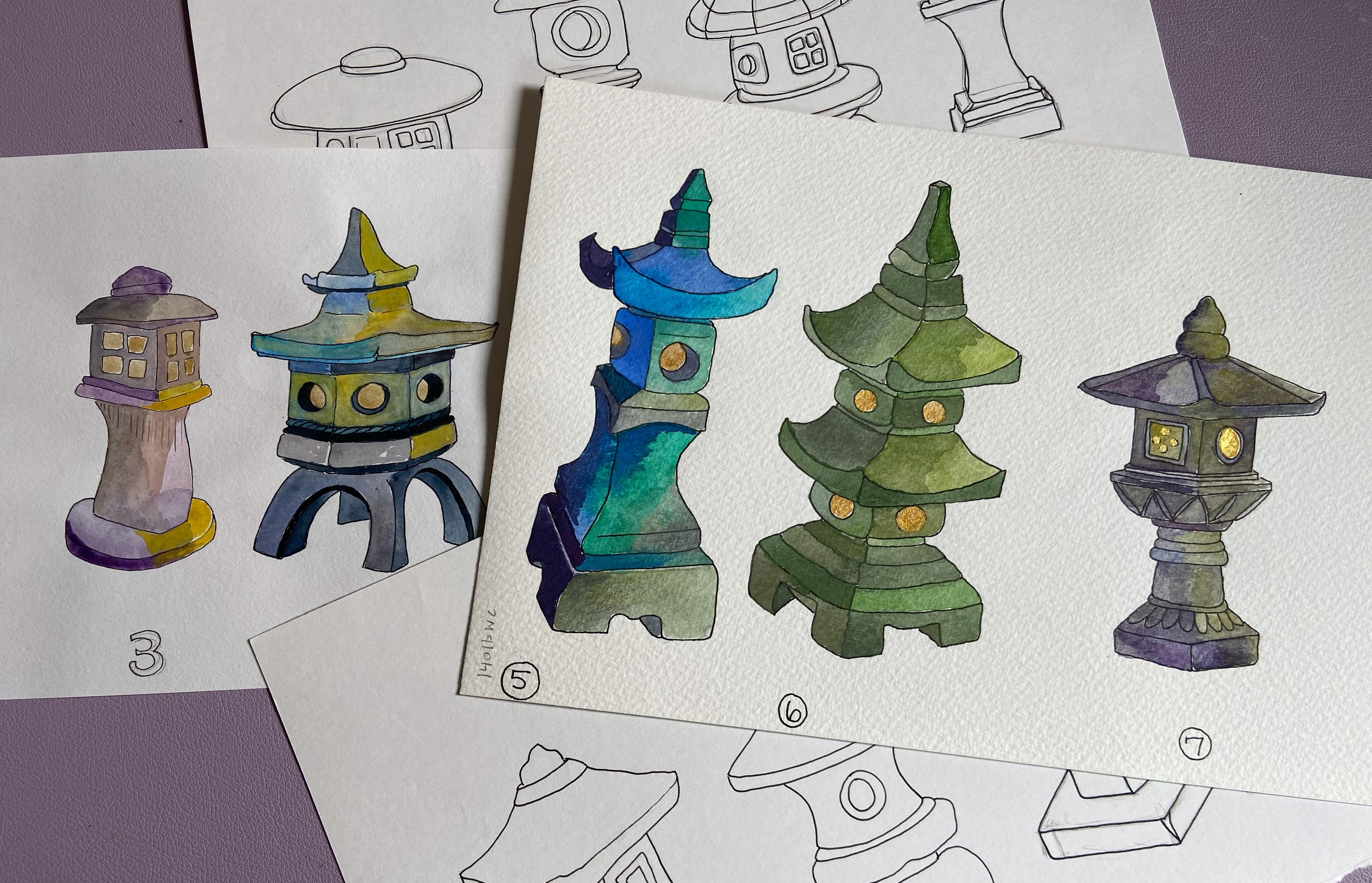 Last year, my 100 Day Project involved drawing and painting a series of stone lanterns. Even though I didn’t finish, it was a project that captivated me.