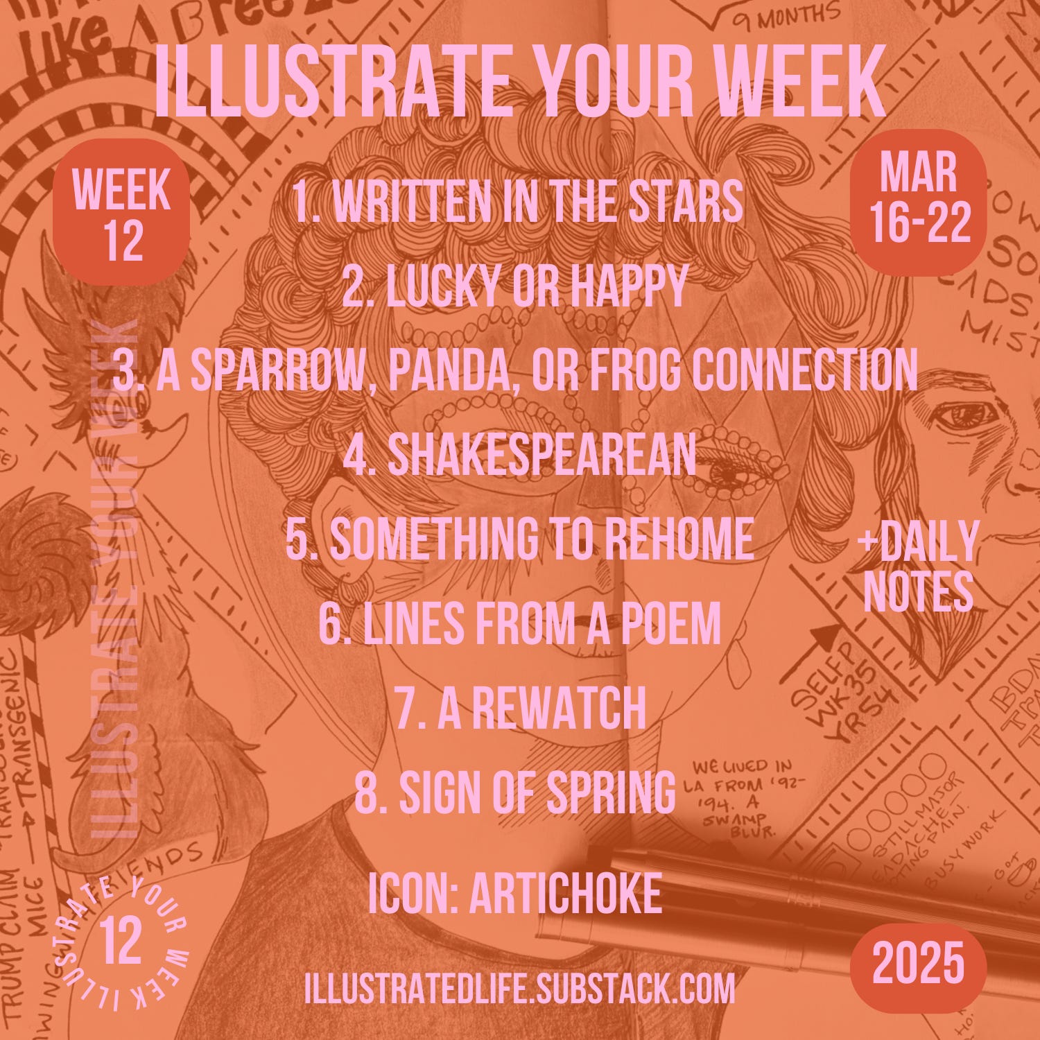Illustrate Your Week Prompts for Week 12 (2025) — Mar 16-22