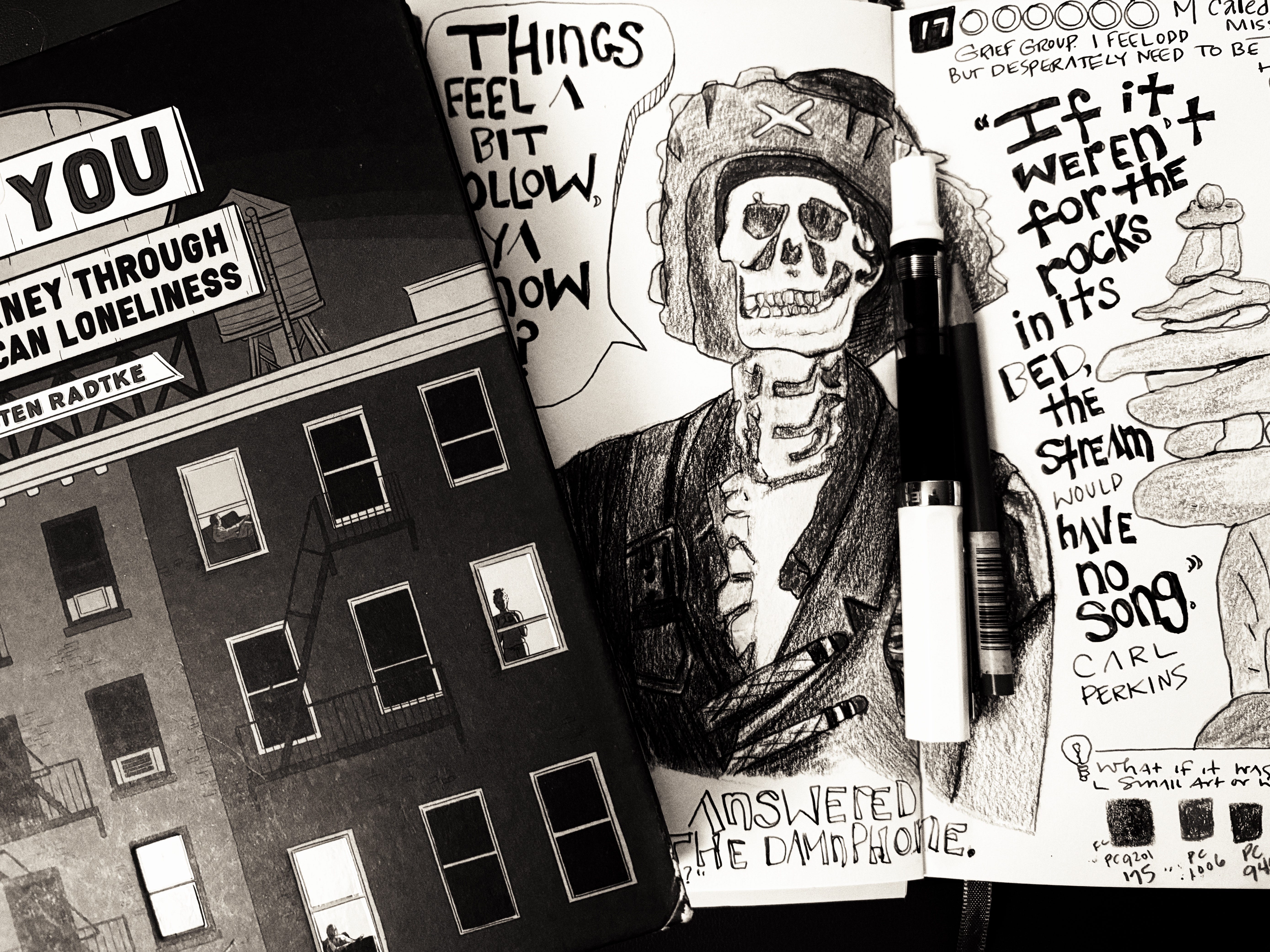 I need casual talk even if veers into casual talk about loss. The weeks are long, even if they pass in a blur. The hour of time on Sunday when I draw with people and we talk about everyday things—books, TV, pen and ink—is wonderful. But there are a lot of hours between one Sunday and the next.